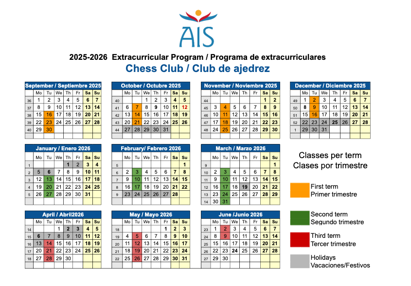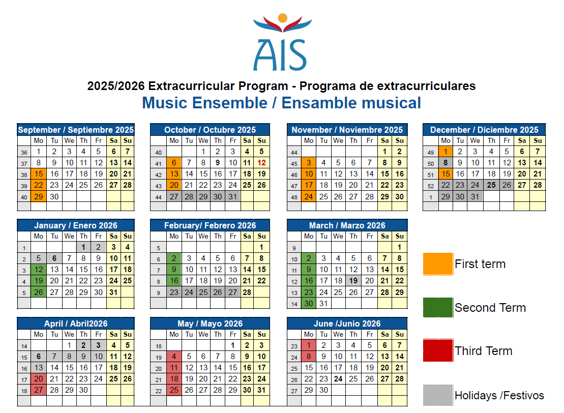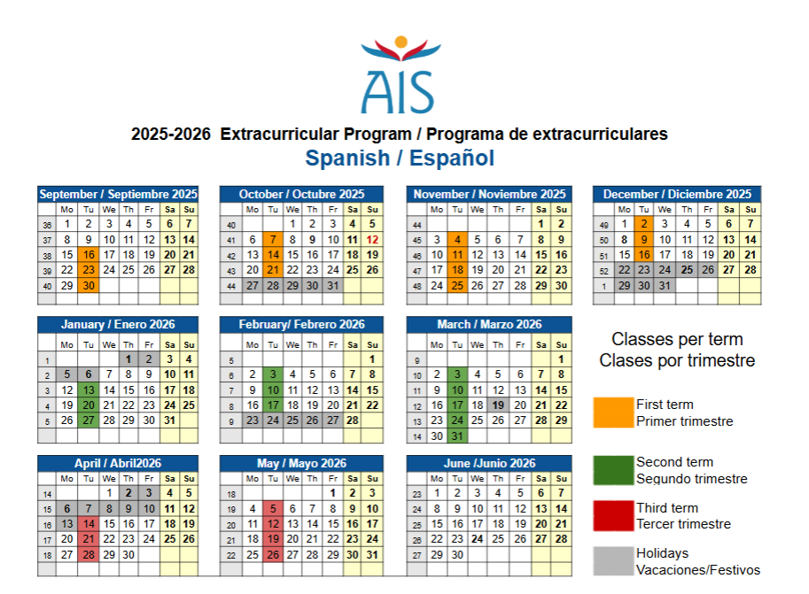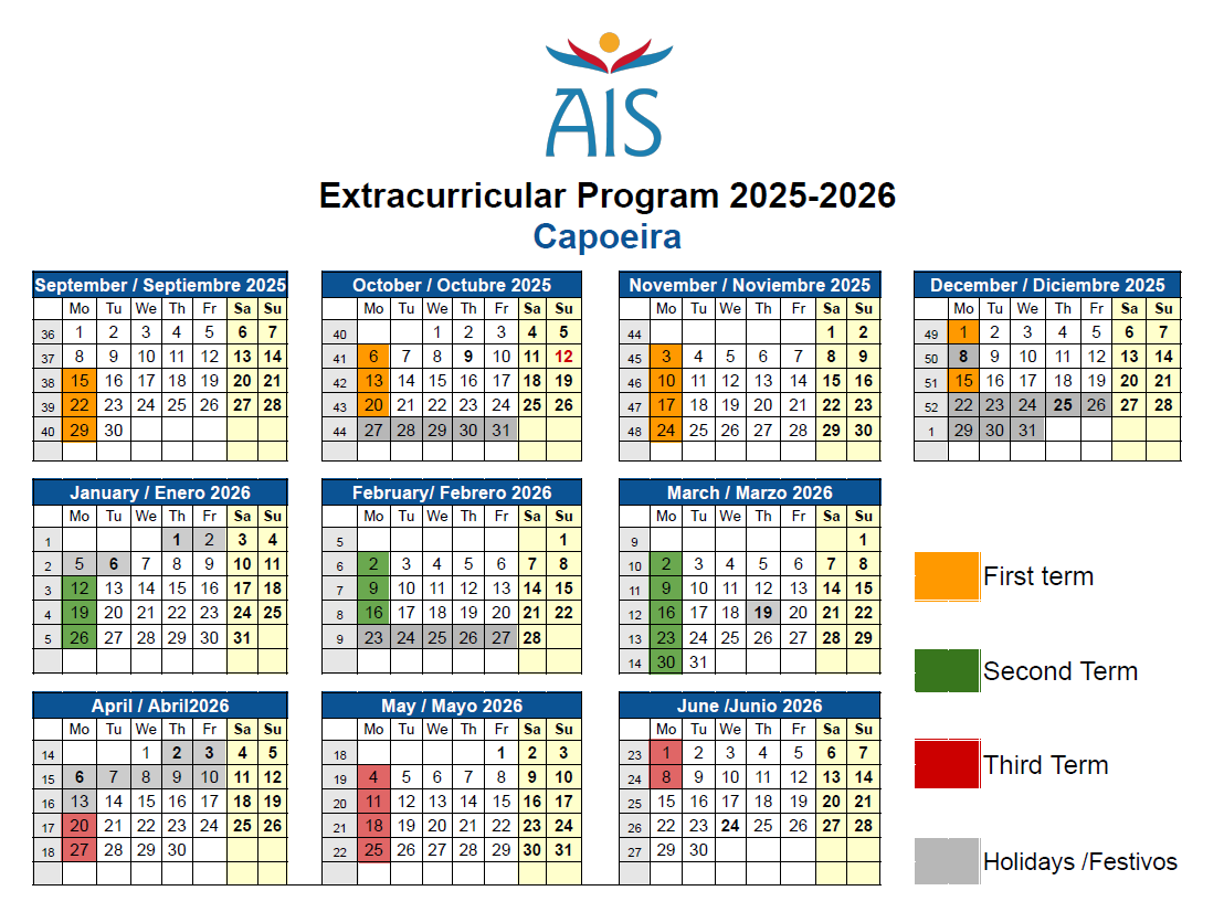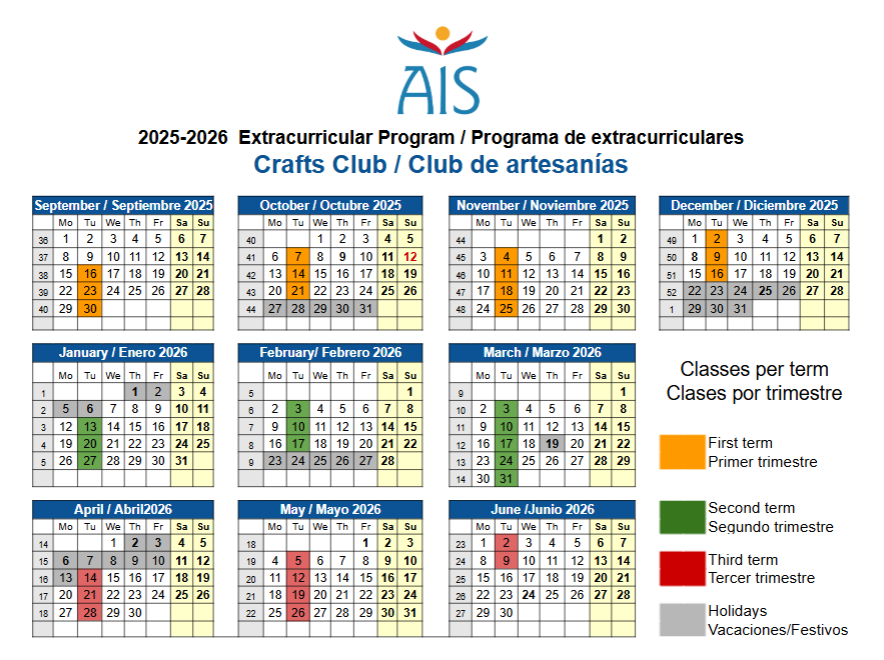 Extracurricular classes will run from Monday, 15 September 2025 to Friday, 12 June 2026.
