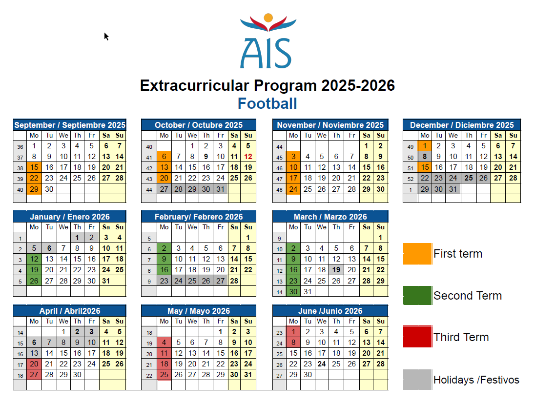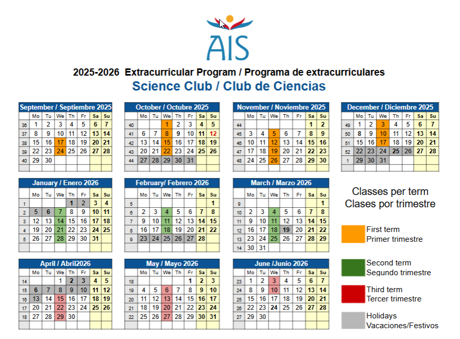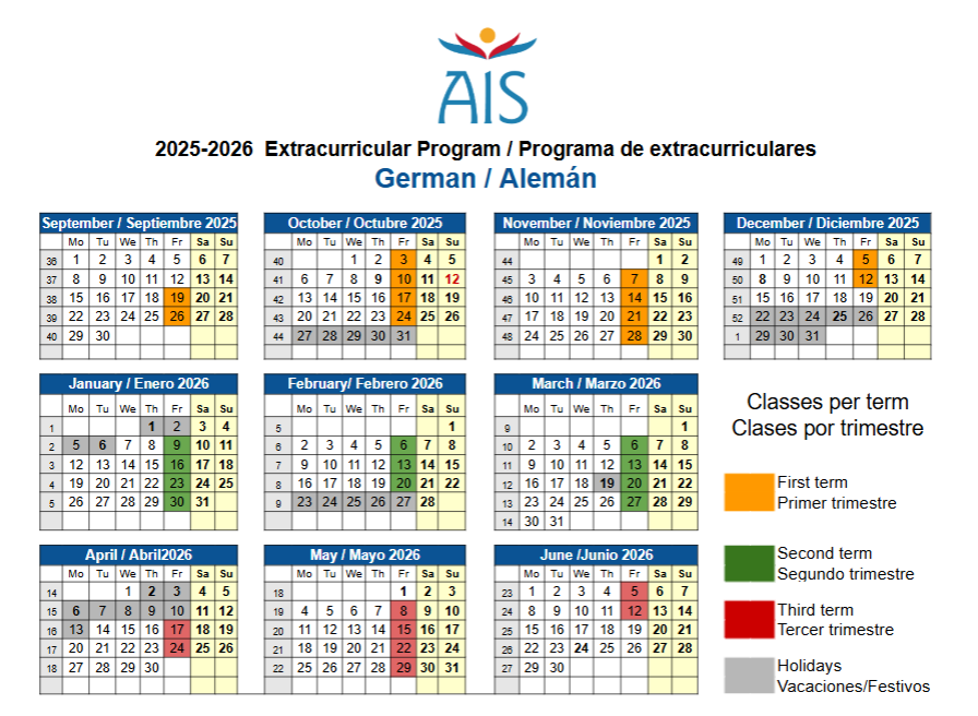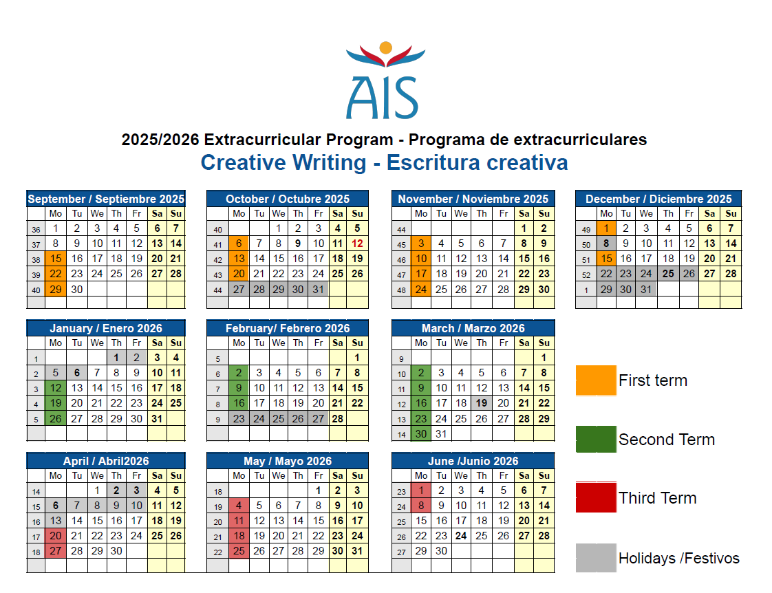 Extracurricular classes will run from Monday, 15 September 2025 to Friday, 12 June 2026.
