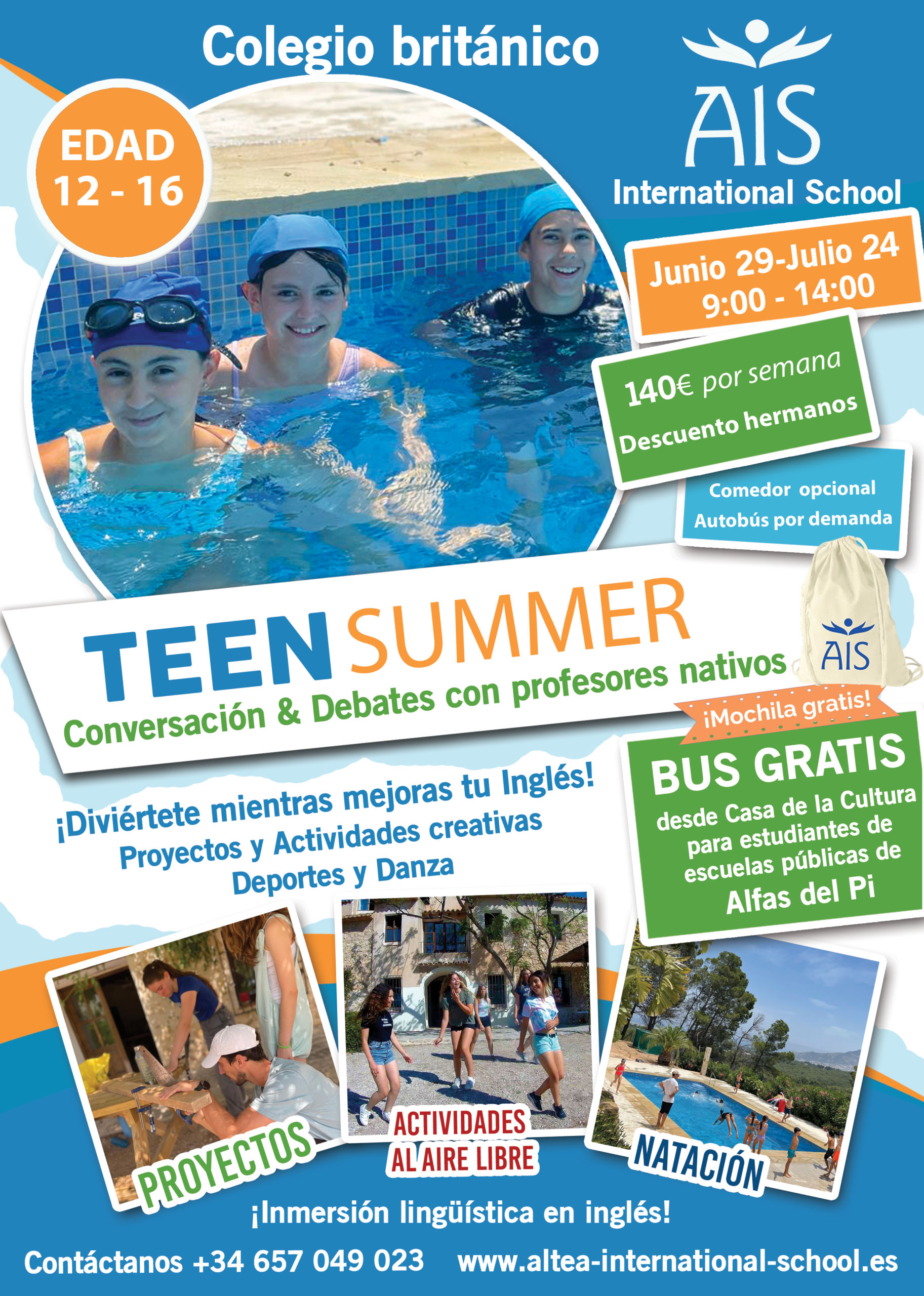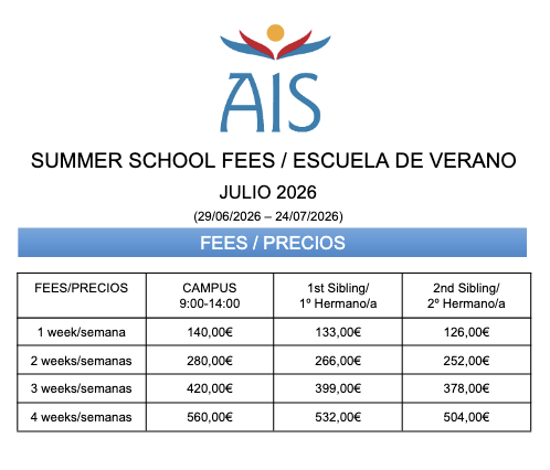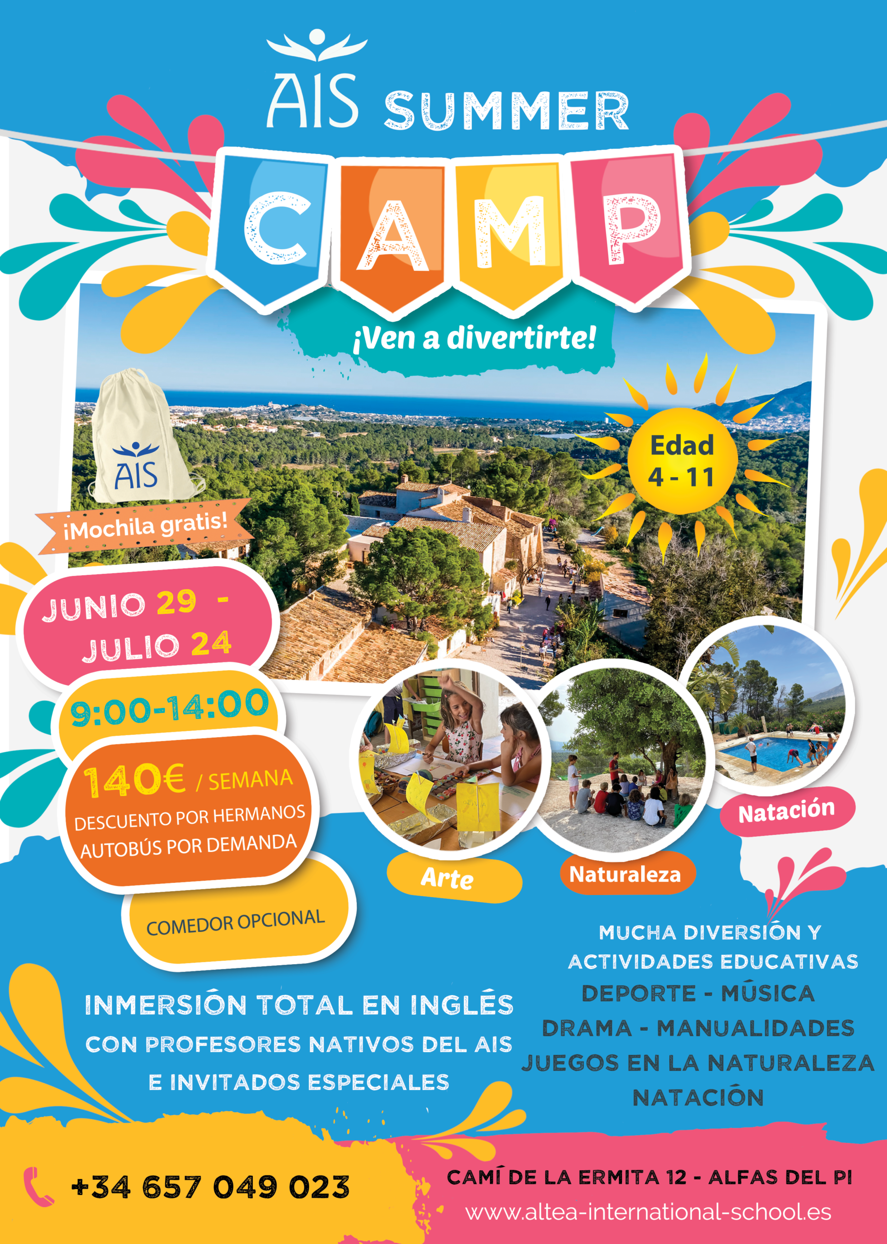 La Escuela de Verano AIS ofrece una atractiva mezcla de actividades divertidas, educativas y deportivas en nuestras bien equipadas instalaciones. Situado en un lugar privilegiado, rodeado de naturaleza y con vistas a la costa mediterránea. entre los municipios de Alfas del Pi, Altea y La Nucía, nuestro campus ofrece un entorno perfecto para el aprendizaje y las actividades recreativas.Todas nuestras aulas están equipadas con aire acondicionado, nuestras amplias zonas al aire libre ofrecen abundante sombra, y nuestra piscina ofrece un refrescante descanso cada día.